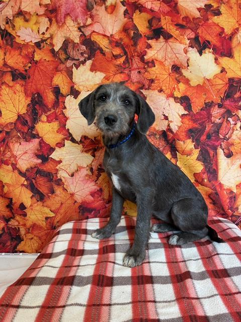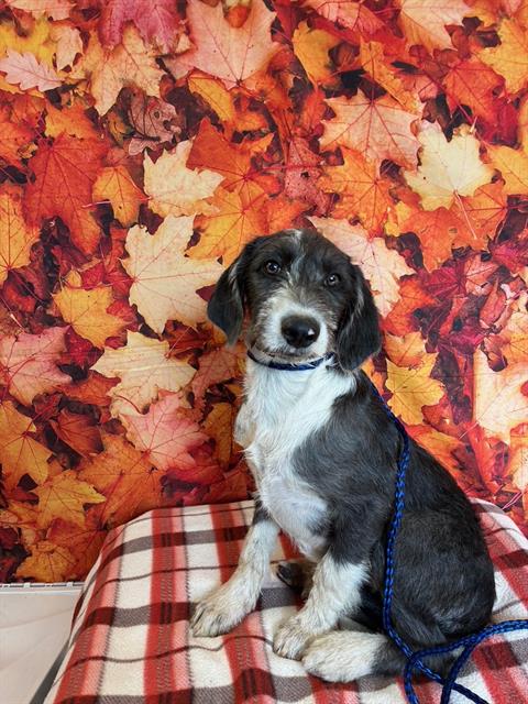 The shelter named me Pluto. I am a 12 week old male gray & white Poodle - Standard Mix. I have been at the shelter since Thursday, September 25, 2025. Must provide proof of home ownership or landlord approval at the time of adoption.
