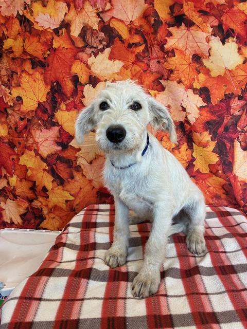 The shelter named me Jupiter. I am a 12 week old male white Poodle - Standard Mix. I have been at the shelter since Thursday, September 25, 2025. Must provide proof of home ownership or landlord approval at the time of adoption.
